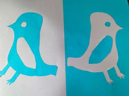 「あべこべの絵」図案を切り出して台紙に貼ります。