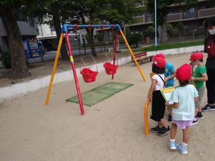 1年生は今日16日(水)1時間目と2時間目をつかい、あびこ公園へ行き、みんなのためのもの(施設)を調べました。