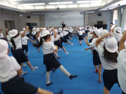 児童一人ひとり、川瀬先生の見本のおどりをしっかり見て、楽しみながら覚えています。