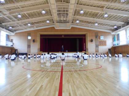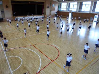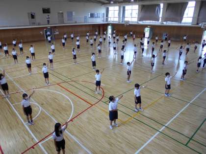 今日から体育参観の練習が本格的に始まりました。3時間目には体育館でエイサーの練習を行い、最後にはお互いの成果を鑑賞し、他の学級の良いところを伝え合いました。