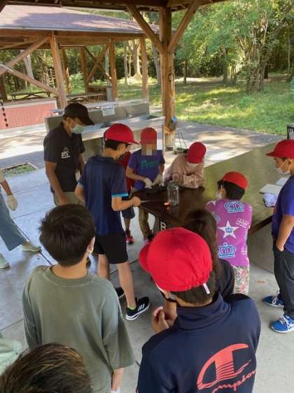 自分たちでおこした火で、かまどに火をつけます