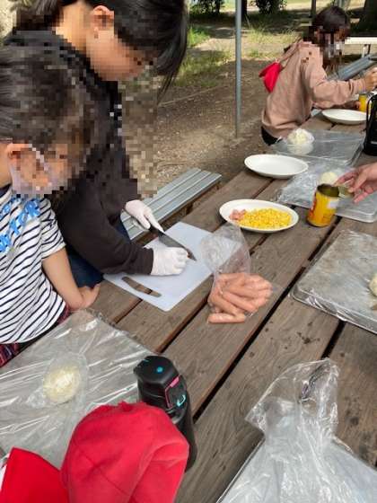 缶切りでコーン缶とマッシュルーム缶を開けて