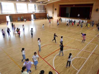 遠足が延期になったので、午後からは、残念な気持ちを切り替えて、体育館で学年でドッジボールをしました。