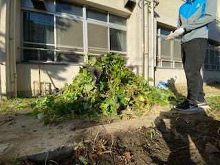 刈ったツルをまとめると、大人の腰の高さにまでなりました。
