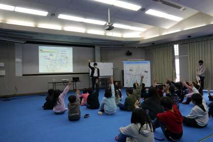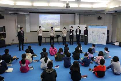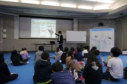 大和川河川事務所の方に来ていただき、大和川の歴史や防災などについて話を聞きました。また、お子様に今日の内容を聞いてみてください。