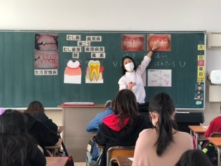 歯と口の健康教室がありました。歯科衛生士さんに、虫歯と歯周病のお話を聞きました。噛む回数やおやつの食べ方、好き嫌いなどの自己チェックをしたので、今後に生かしてほしいと思います。