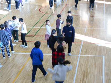 たてわり集会で、2年生と「王様じゃんけん」をしました。簡単なじゃんけん遊びですが、子どもたちは勝ったら喜び、負けたら残念がっていました。