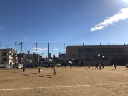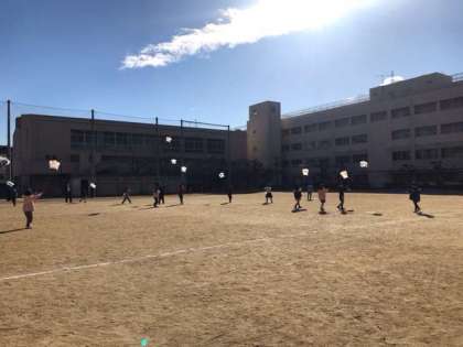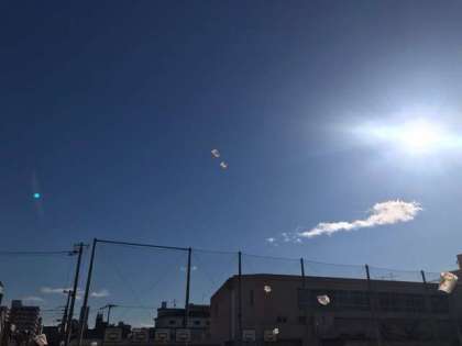 今日は少し肌寒かったですが、きれいな青空がみえました。運動場では1年生がたこあげを楽しんでいました。時折吹く強い風で、高く飛んでいる凧もありました。