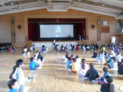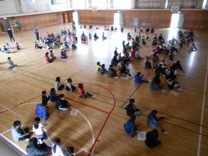 児童集会では、2年生と一緒に「この先生は誰でしょう」クイズをしました。久しぶりの集会でしたが、4年生はリーダーとして、2年生の子どもたちに声をかけて取り組むことができていました。