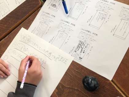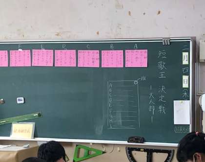5年生のある教室では、保護者の方々からお寄せいただいた7つの短歌のそれぞれの良さを出し合っていました。