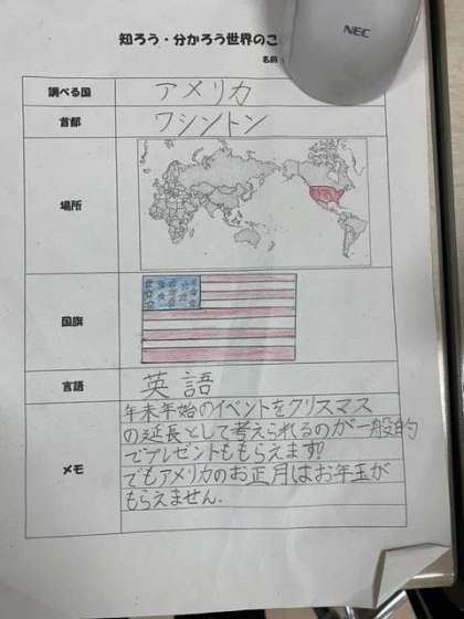 日本と同じところやちがいを学んで、新聞にまとめていきます。