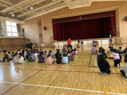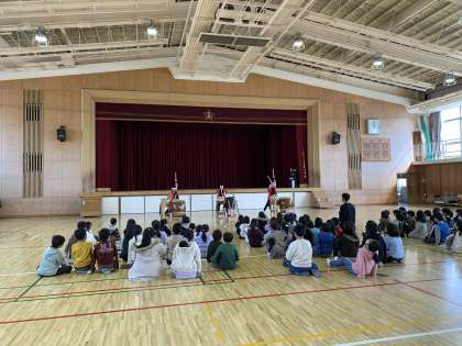 今日の3時間目は浅香太鼓集団「獅子」さんに来ていただきました。太鼓の体験活動をした児童は、真剣にバチを握って太鼓を叩いていました。見ている子も同じリズムを手や足で刻んでおり、充実した1時間になりました。最後は「獅子」さんの演奏を聴き、教室に帰っても興奮した様子で、感想を言い合っていました。またお家でも話を聞いてあげてください。