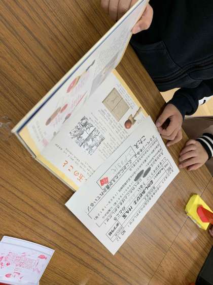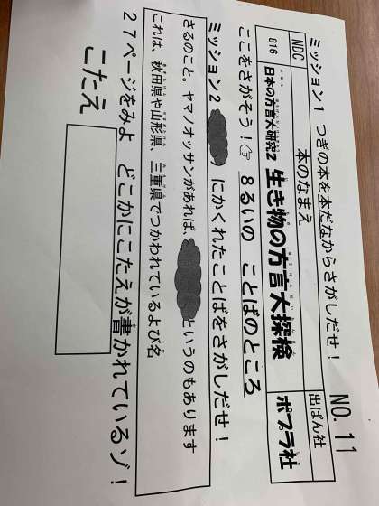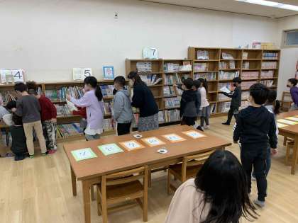 先日の図書の時間の様子です。ペアに1つ、ミッションとして紙を渡し、本を探す取り組みをしました。ヒントを手掛かりに、楽しみながら分類番号を学習をすることができました。「もう1枚やりたい!」と積極的に活動する姿もたくさん見られました。