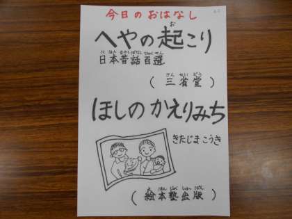 お話配達がありました。久しぶりの機会でしたが、子どもたちは興味をもって、最後まで集中して聞いていました。