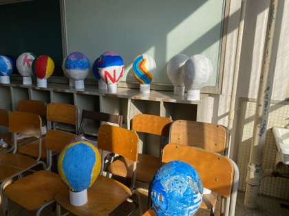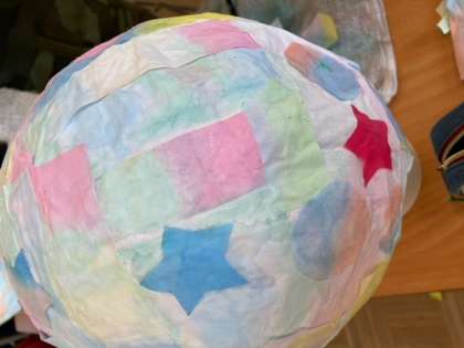 一枚一枚、ていねいに貼り重ねてきた「気球」もいよいよ完成に近づいてきました。