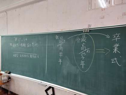 1組では卒業を意識して、「最高の学年」になろう!という話と「楽しい」とは?という話をしました。