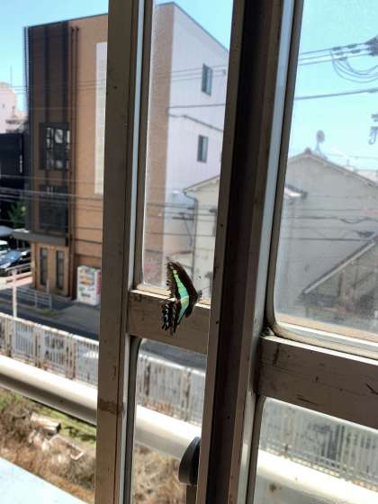 アオスジアゲハさんが教室に遊びに来てくれました(^^)