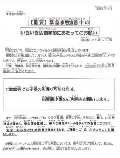 以下の事項についてご理解・ご協力のほど、よろしくお願いします。