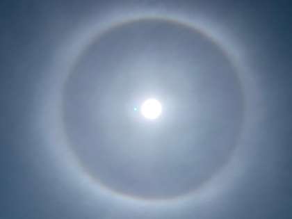 太陽の周りに、虹色の光の輪「ハロ」が出ていました。