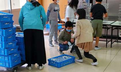 毎日の給食の後、みんなが飲んだ牛乳パックがきちんと返されているか、牛乳かごが揃っているかチェックをしています。