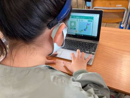 教室の掲示物で、都道府県の場所を確認している人がたくさん出てきました。タブレットを使った学習にも積極的に取り組んでいます。何度も何度も取り組む姿が素敵です!!