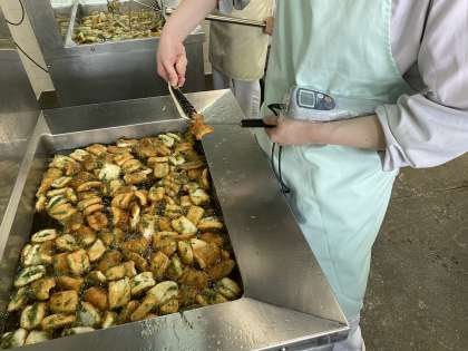 湿度が高くなり食中毒が心配な季節ですが、中心温度をしっかり測るなど衛生管理に努めています。