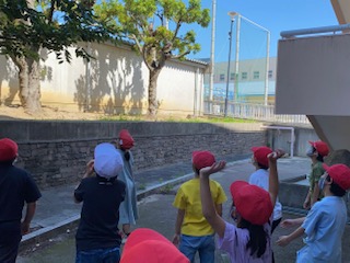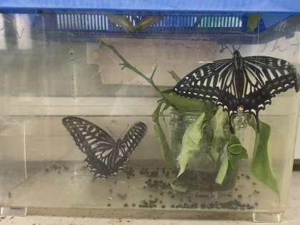 今朝、教室に行くと、クラスで育てていたアゲハ蝶のさなぎがせい虫になっていました!とても立派なせい虫になっていたので、みんなで運動場に羽ばたかせました!