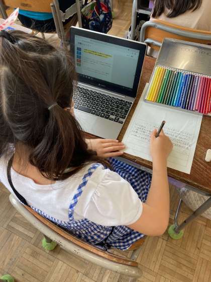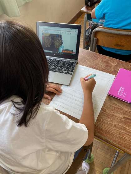 今日はシーサーについて調べました。一人一台端末を使い熱心に調べていました。