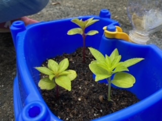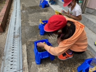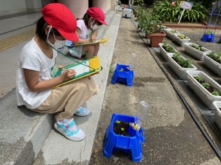 今日は久々に観察をしました。ものさしをつかって「草たけとてものびてる!」「子葉だけではなく、葉もはえてきている!」と、授業で学習した言葉を使いながら観察をしていました。
