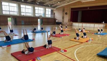 大きな美しい前転や後転を練習しています。やり方のコツを考えてどんどんチャレンジしています。ナイス!!!