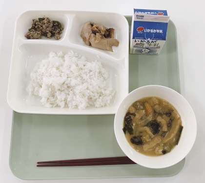 今日の献立は、やきとり.なすのそぼろいため.みそ汁.ご飯.牛乳です。今日は夏が旬(おいしくて、たくさんとれる)の野菜が2つ入っていました。なすとかぼちゃです。かぼちゃは秋や冬のイメージが強いですが、実は夏が旬の野菜です。