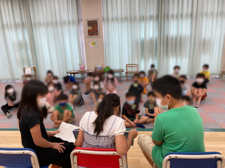 毎週おすすめの絵本を紹介したいということで、子どもたちが読み聞かせをしてくれました!クラスのお友だちも真剣なまなざしで聞くことができていました。「来週はもっとすらすら読めるように練習する!」と言っていたので来週の読み聞かせも楽しみです。