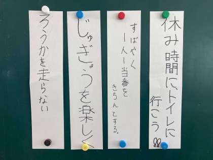 「司会」「書記」「意見を出す人」など役割を決め学級で話し合いを行いました。