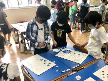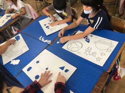 2年生は図画工作でカッターナイフを使って作品をつくっています。