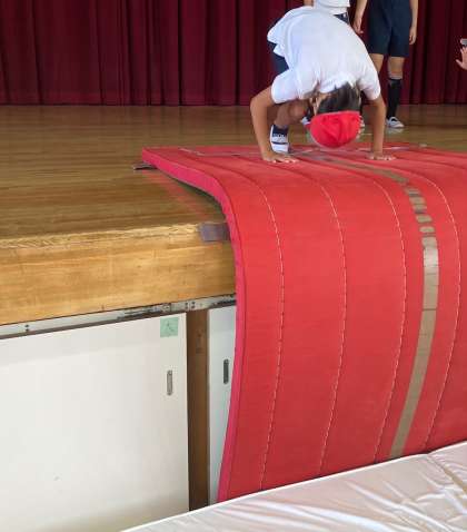 今日は台上前転にチャレンジしました。
