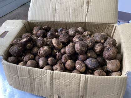 今日は月見の時に備える芋や団子にちなんだ献立が登場しました。生の里芋がなんと12kg届きました。一つ一つ皮を剥いて時間をかけてじっくり煮込んでつくりました。
