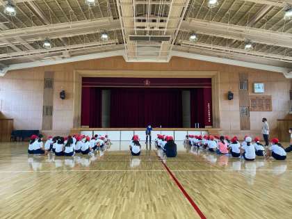 運動会練習がスタートしました。4年生はエイサーを演じます。