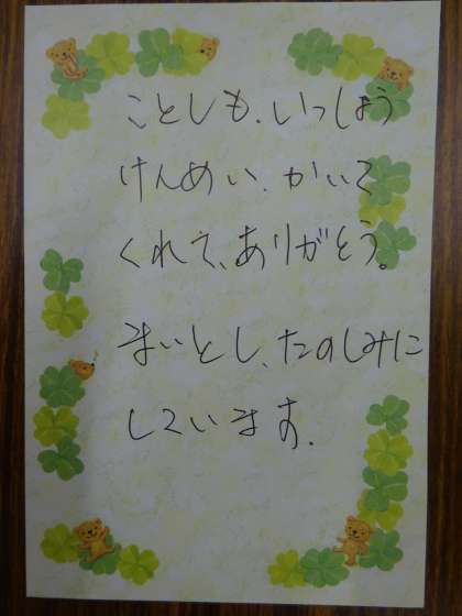 子どもたちが贈ったプレゼントやメッセージカードのお礼の手紙が届きました。子どもたちの気持ちに対して、お応えいただき本当にありがとうございます。