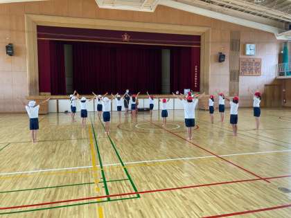 今日5,6年生は委員会活動があり、放課後15分ほど4年生だけで練習しました。写真の姿勢をご覧ください。高い意識をもって取り組めています!!ナイス!!!
