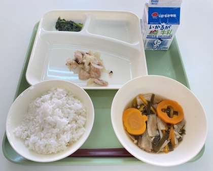 今日の給食は、鶏肉のゆず塩焼き.ソーキ汁.ほうれん草のおひたし.ご飯.牛乳です。