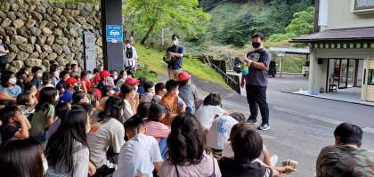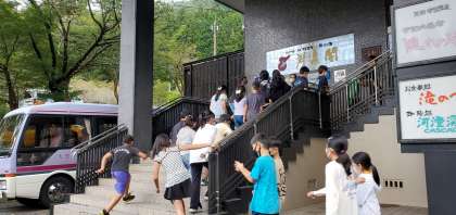 赤目の自然を満喫した子どもたちは、宿舎に戻り、避難訓練をした後、入浴を始めました。