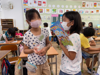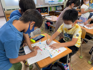今日は「What color do you like?」「What foods do you like?」とお友だちに尋ねて、尋ねられたら答えるという活動をしました。メモをとりながら楽しそうにお友だちと交流する様子が見られました。ナイス!