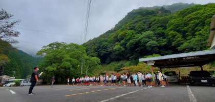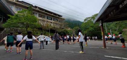 宿舎前で集合し、ラジオ体操を行いました。