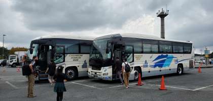 14時現在、学校到着予定は14時50分と考えております。交通事情等により、到着時刻が前後することがありますので、予めご承知おきください。