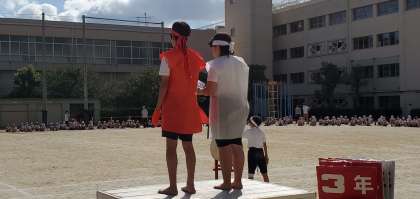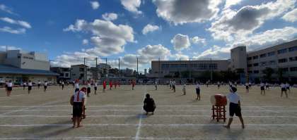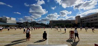 応援団長の気持ちのこもった声、応援団員の一挙一動に、依羅小学校のみんながしっかりと手拍子をして応えました!