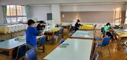 6年生の演技で使用したフラッグのほつれや破れも、ていねいに補修をしました。中には手伝いに来てくれる子もおりとても嬉しかったです。