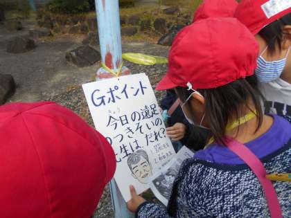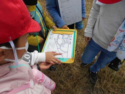 子どもたちは、5人から6人のグループに分かれ、公園内をグループで移動しながら問題を正解したら次へ進むオリエンテーションに取り組みました。各班にはリーダー、副リーダー、時計係、地図係、保健係に分かれ、一人一人がグループの係をもって取り組みました。「こっちに行こう。」「この問題の答えは私がわかった。」などの声があちらこちらで聞こえ、子どもたちは仲良く楽しんでいるようすでした。オリエンテーション後は、お腹がすいたので楽しみにしていたお弁当を食べました。お昼からはクラスごとに、縄跳びや増え鬼、天使と悪魔、エンジェルなどのみんな遊びをして楽しみました。子どもたちは、また1つ楽しい思い出ができたと思います。