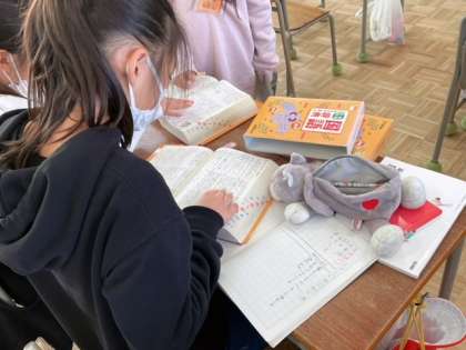 国語では、くらしの中の和と洋について学んでいます。そのために辞書やタブレットを使って意味調べをしています。早くできた子は友達に教えに行ったりしてました。みんな頑張っています。この調子でファイティン!!