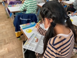 図工では、国語で学習した「モチモチの木」に取り組んでいます。今週は木・月・地面までかきます。そして土曜日の参観の時に、お家の方と一緒にモチモチの木に灯りをつける作業をしようと思っています!