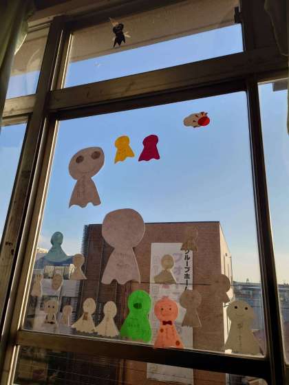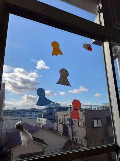6年生の子どもたちは、2日間の行程で雨に降られないよう、てるてる坊主を教室に飾っていました。